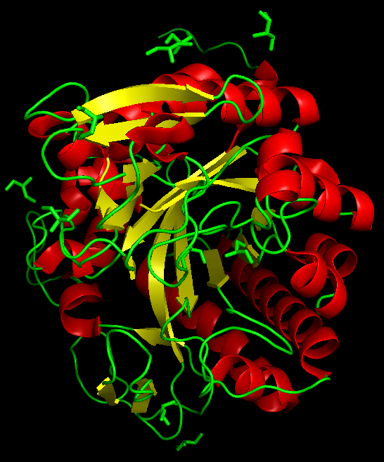 PyMOL에 처음 단백질을 로딩시키면 단색으로 나타납니다. 단백질의 2차 구조를 구분하기 위해선 다음과 같은 명령어를 순서대로 입력해 줍니다.